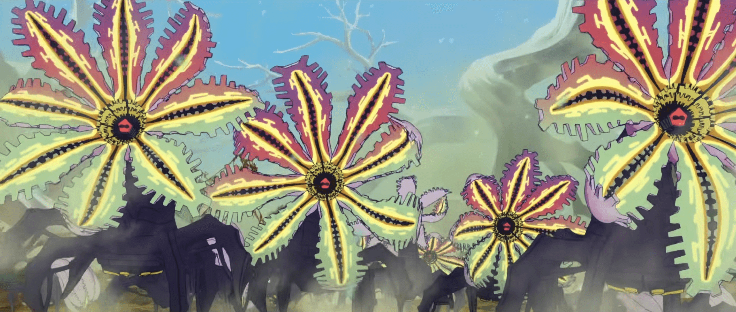 I’ll start by talking about the visuals, as it’s the biggest selling point. I was surprised to learn that despite the film’s very 2D feel, Studio 4°C’s approach was almost entirely created from a CG workflow. Impressive! They’ve definitely captured an authentic, hand-drawn aesthetic, but one that still has plenty of fluid movement and perspective-shifting action that feels natural and pleasing to view. There's also some fantastic concept design, giving off Evangelion vibes at times, and a vibrant color palette for some trippy, flora-based sci-fi designs, which I thought were an amazing direction to take the Mimics in.